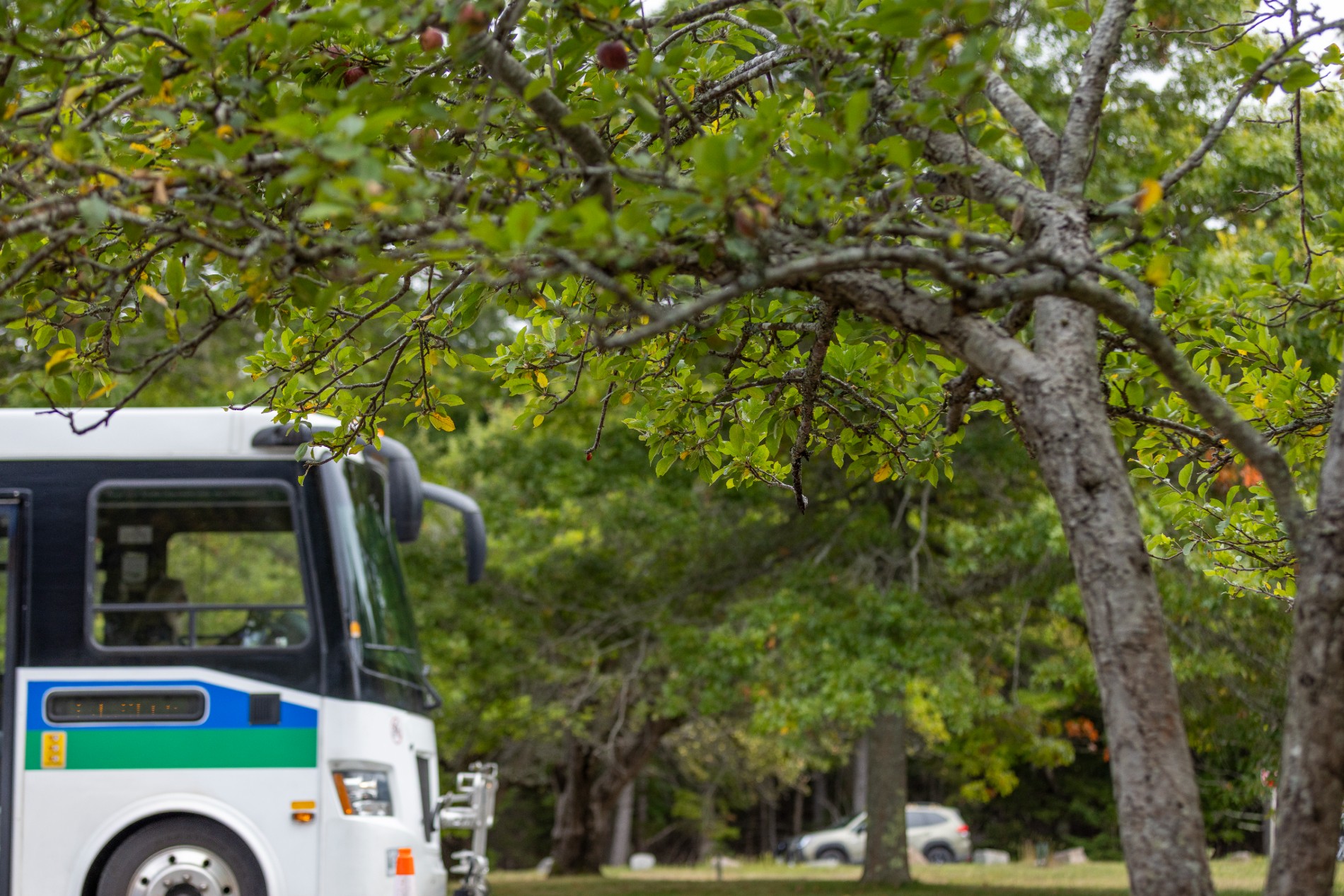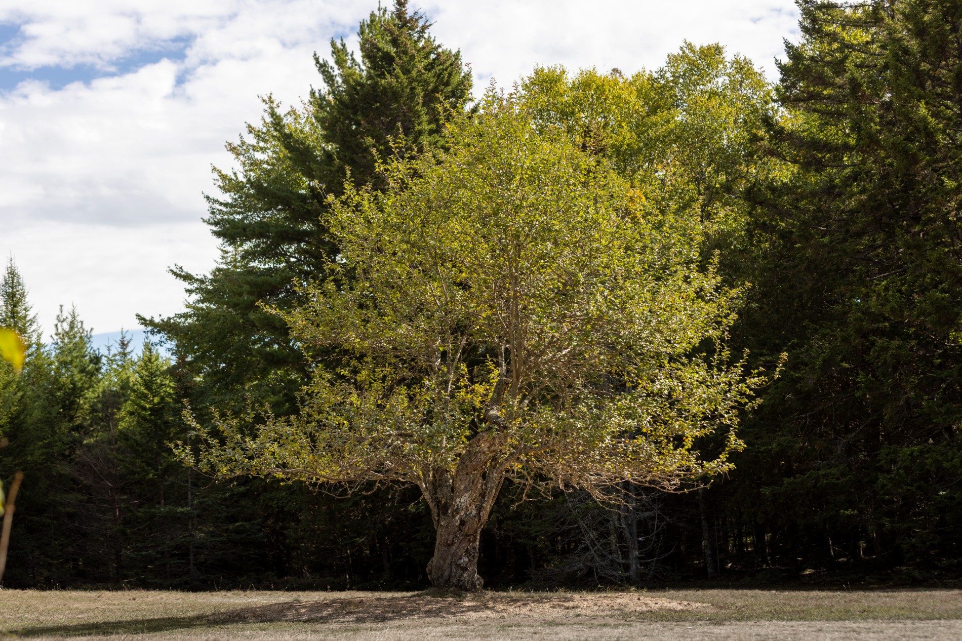 Historic apple tree in the lawn of the Carroll Homestead. (Rhiannon Johnston/Friends of Acadia)