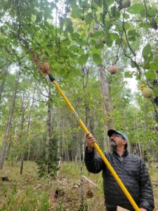 Outside the Jordan Pond House in the fall of 2024, Todd Little-Siebold walked around the trees, looking for graft lines, inspecting their bark riddled with sapsucker holes.