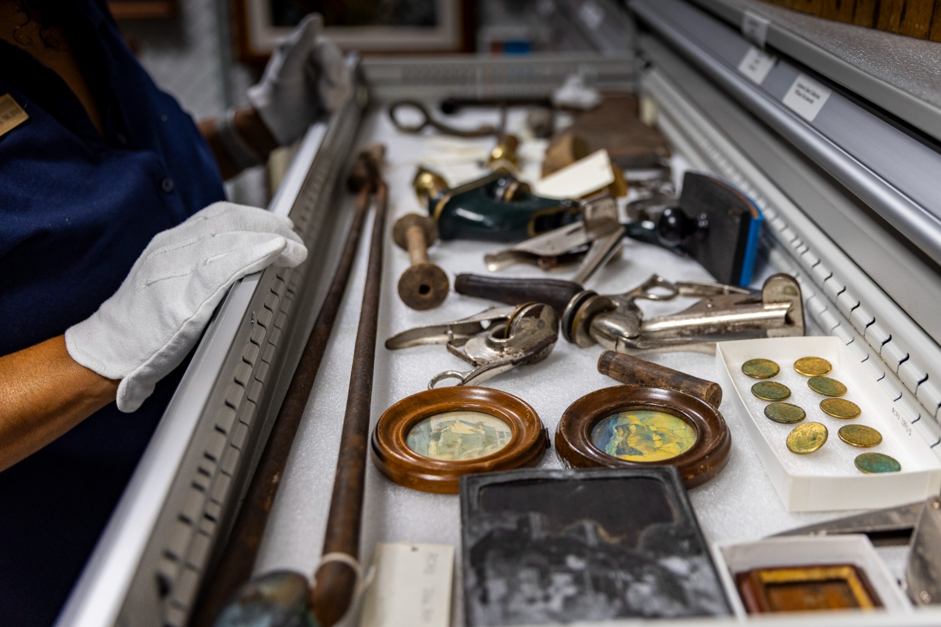 Seeing the collection in person, locked away in a climate-controlled facility at park headquarters among expanding shelves reminiscent of a college library, it’s easy to understand why choosing a favorite item is so difficult. The facility houses about 285,000 cataloged objects, along with archival collections that