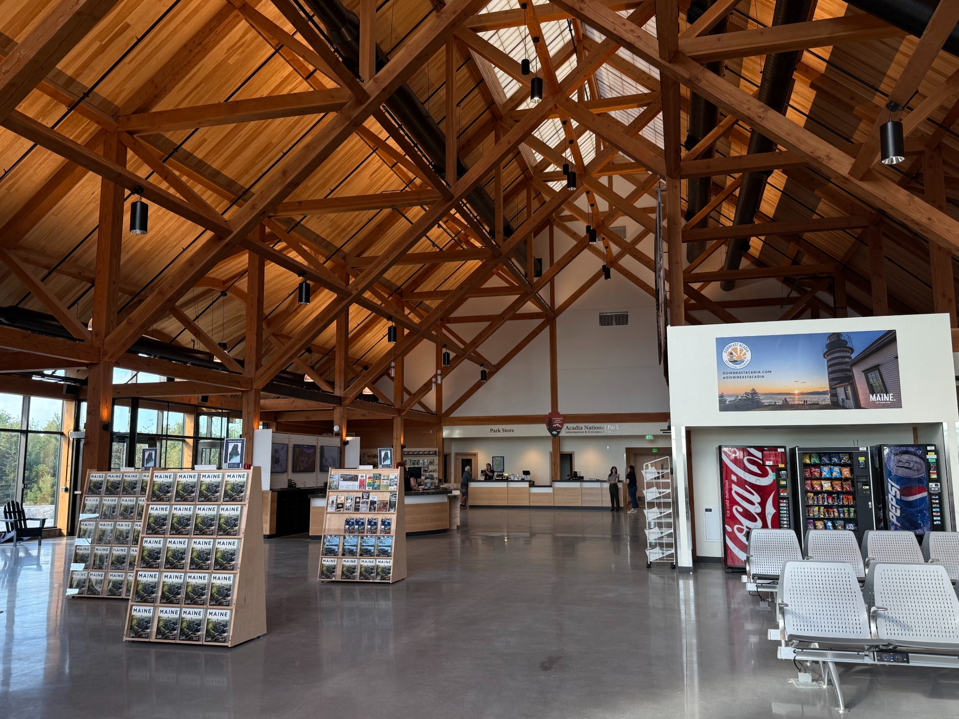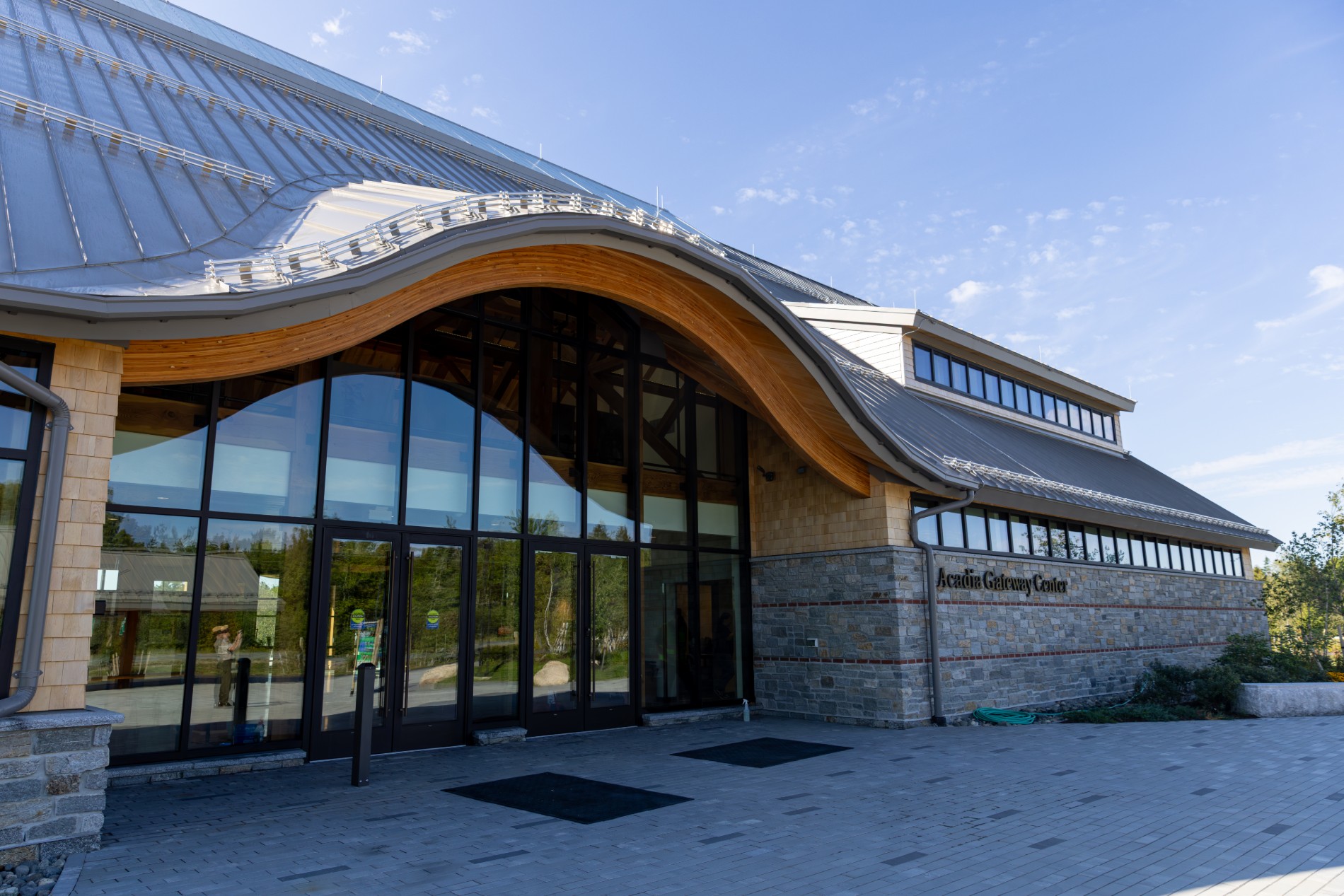 The Acadia Gateway Center shown on its first official day open to the public on Wednesday, September 3, 2025. (Julia Walker Thomas/Friends of Acadia)