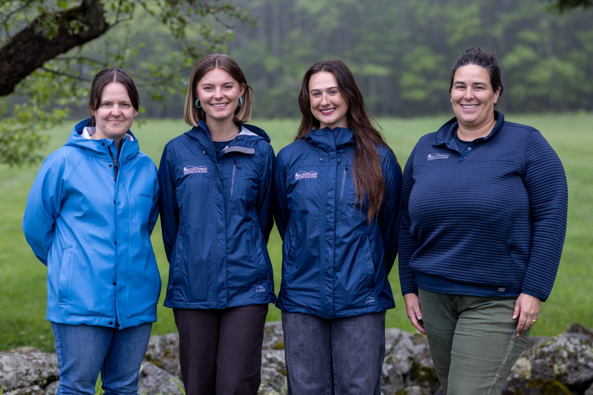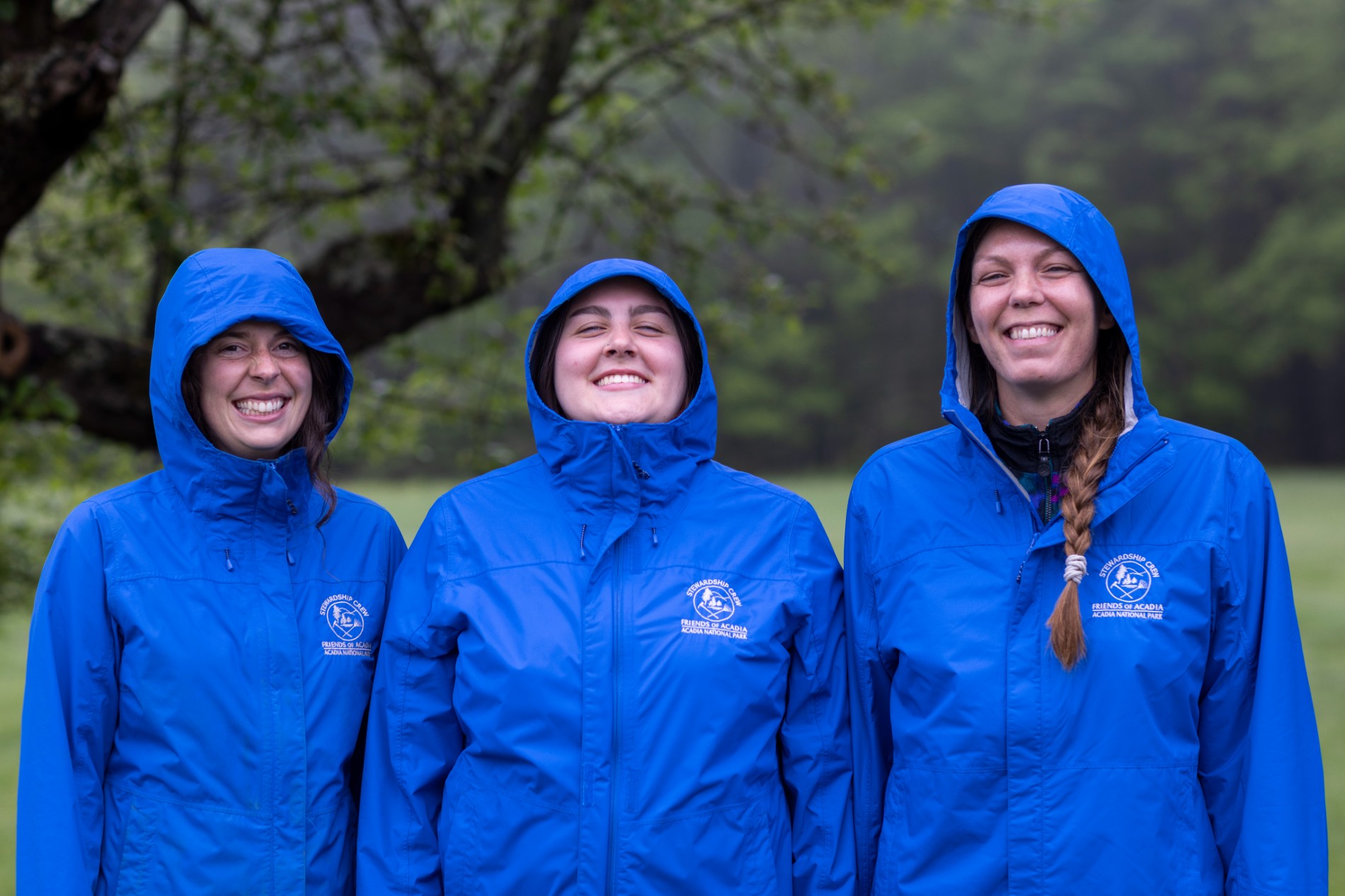 Nikki Burtis, stewardship manager, Nora Marasco, seasonal steward, Gemma Lurie, seasonal steward. (Rhiannon Johnston/Friends of Acadia)