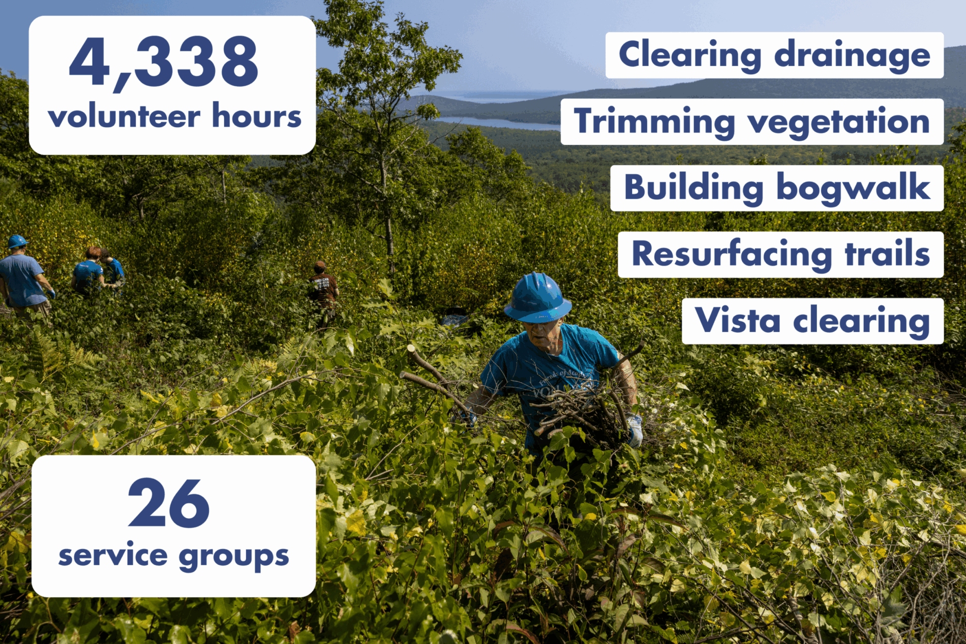 New this year was helping park staff clear Acadia’s carriage road vistas – trimming branches and cutting back foliage to keep those stunning park views we all swoon over. (Read more about vista management in Acadia from this summer’s Acadia magazine.)