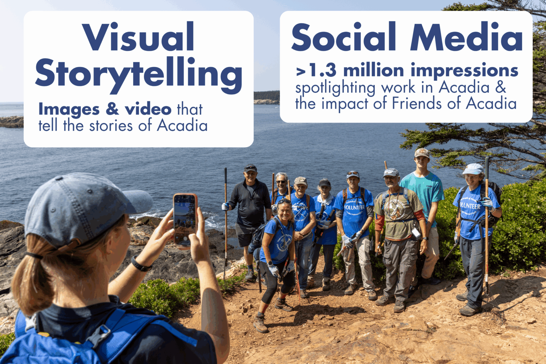 Our Stewardship Crew does important hands-on work on Acadia’s trails and carriage roads, like cutting back vegetation, clearing drainage features, building bogwalk, tread work, weeding carriage roads, and other tasks. And they welcome loads of volunteers to help out each season, too.