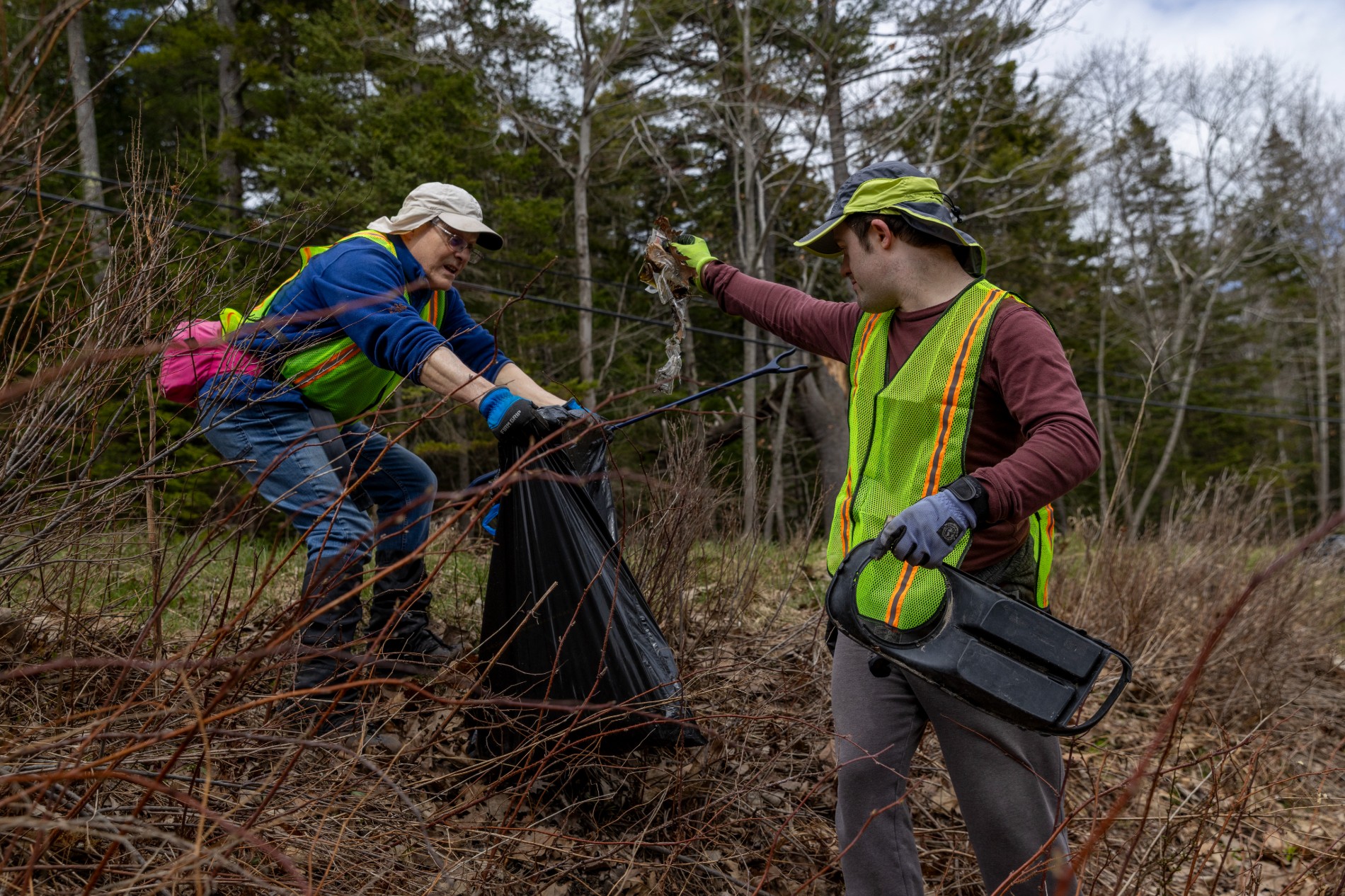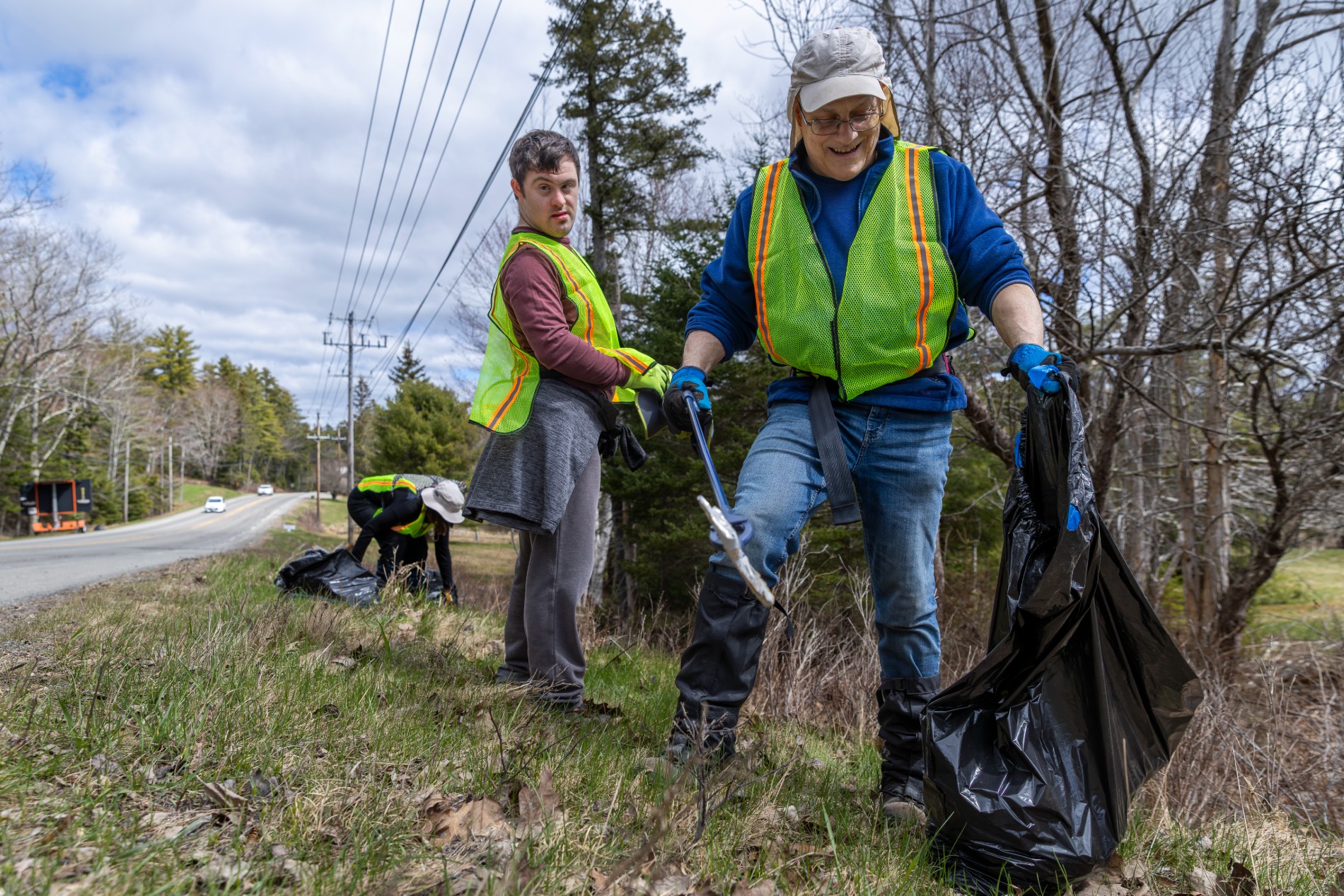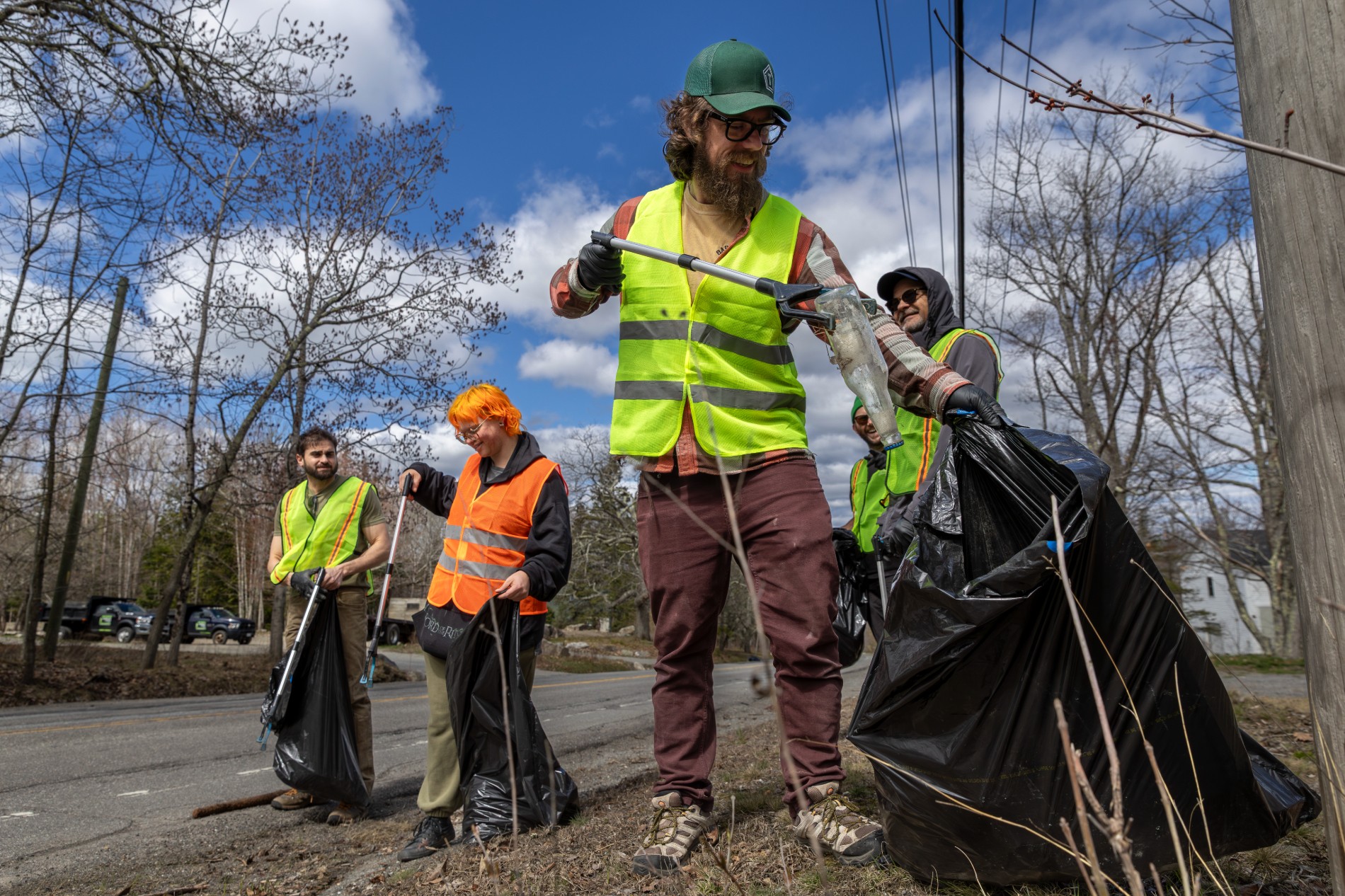 Volunteers with Terramor Outdoor Resort collect trash during the annual Friends of Acadia Earth Day Roadside Cleanup. (Rhiannon Johnston/Friends of Acadia)