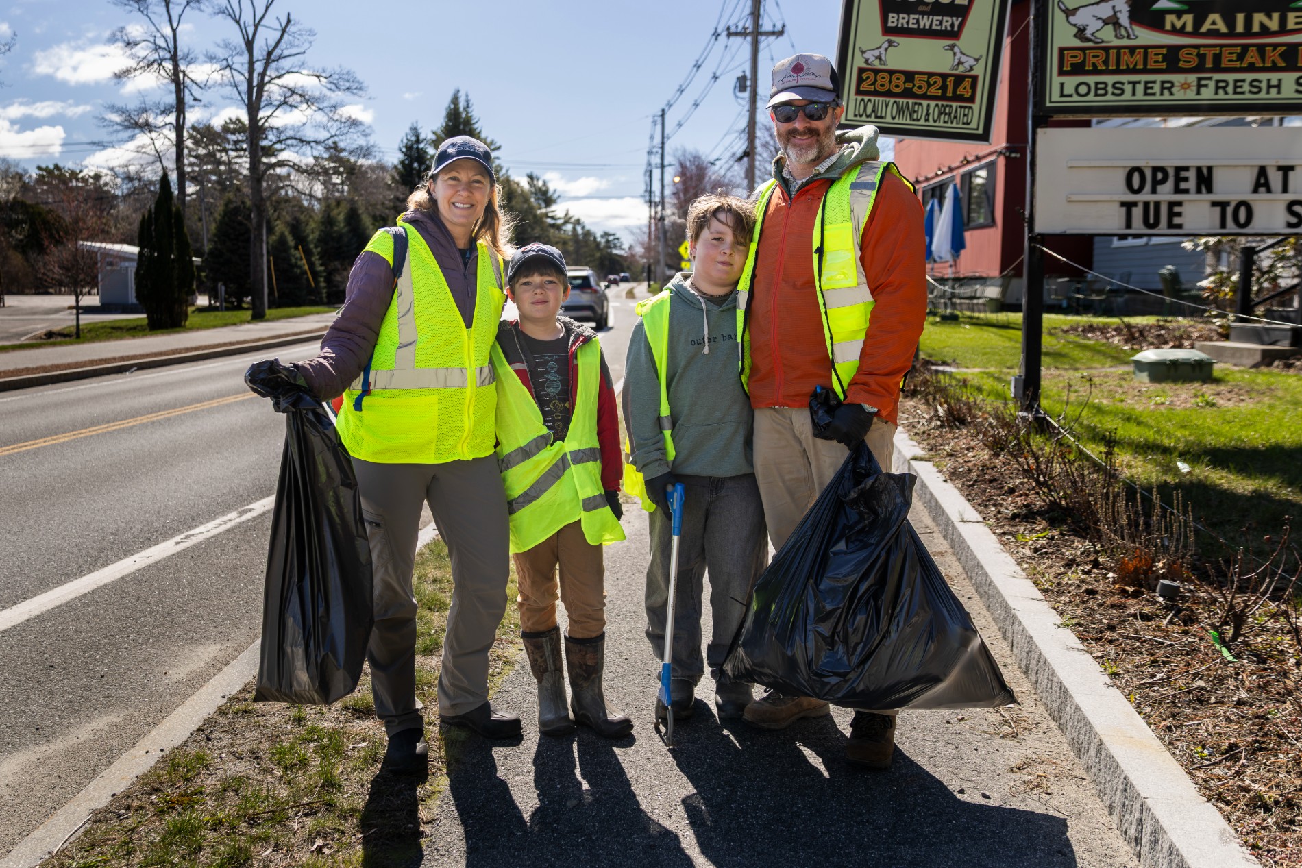 The Dundon volunteers pick up trash along Main Street on Mount Desert Island during the annual Friends of Acadia Earth Day Roadside Cleanup. (Rhiannon Johnston/Friends of Acadia)
