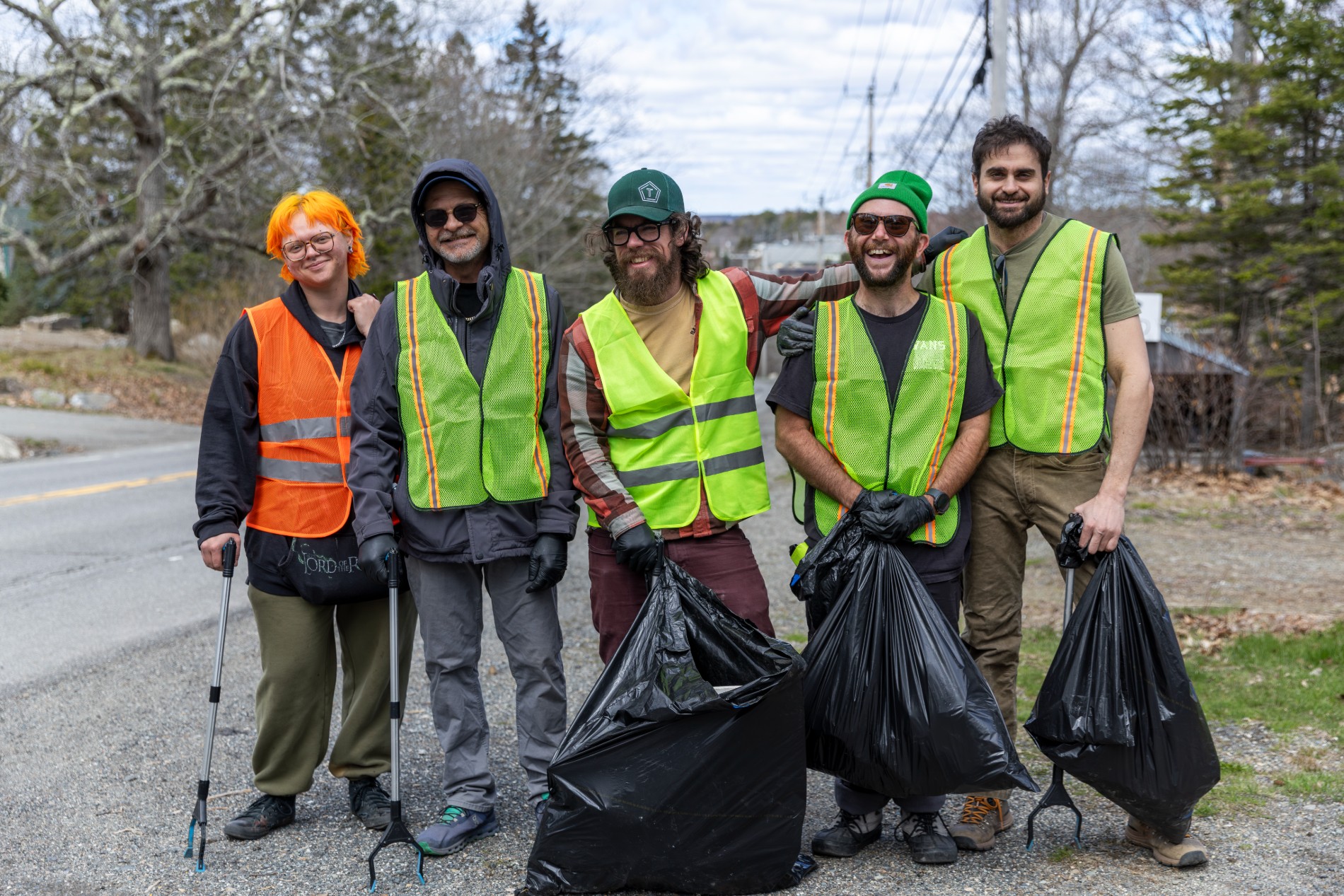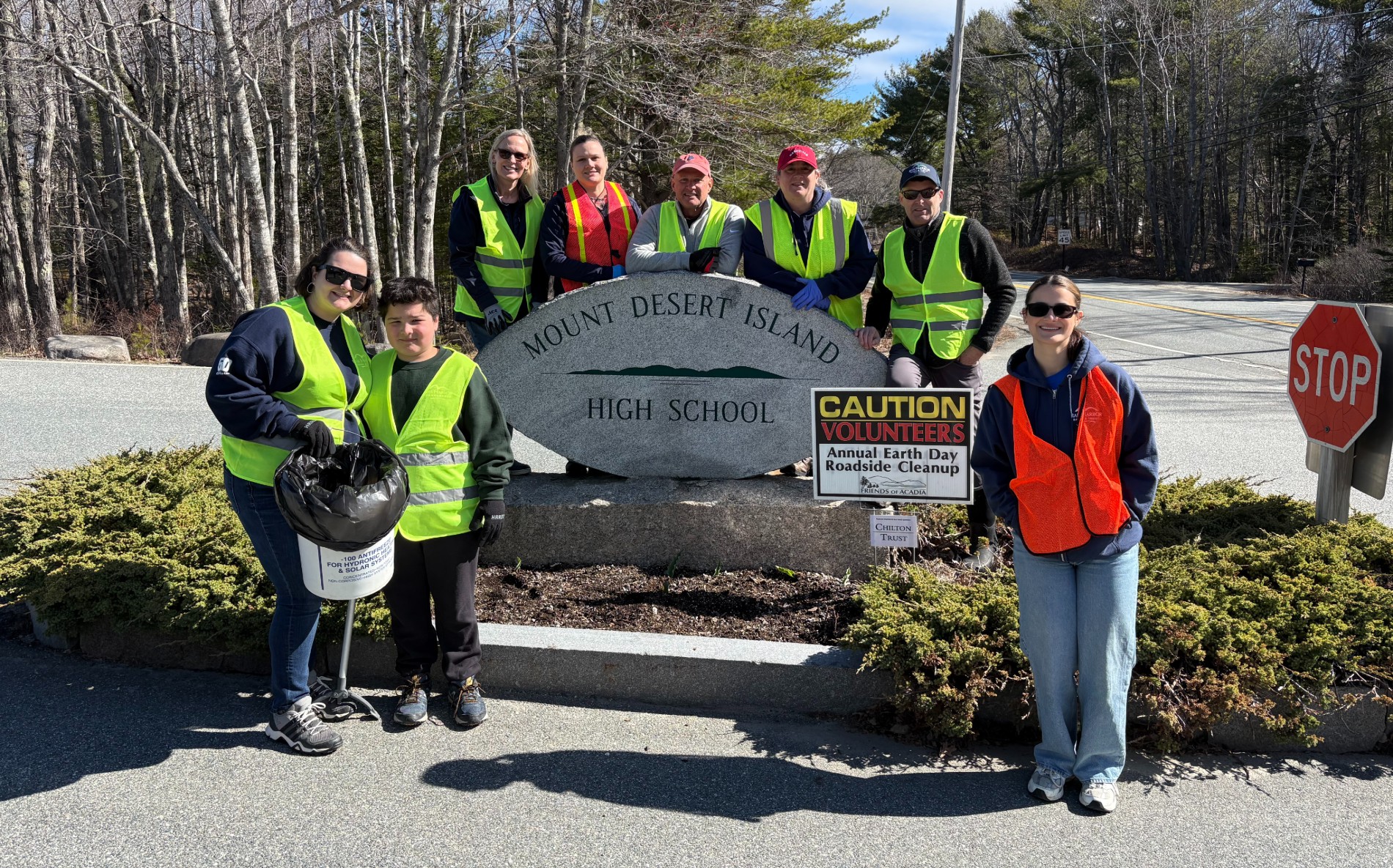 Volunteers in Trenton pose for a portrait during the annual Friends of Acadia Earth Day Roadside Cleanup. (Rhiannon Johnston/Friends of Acadia)