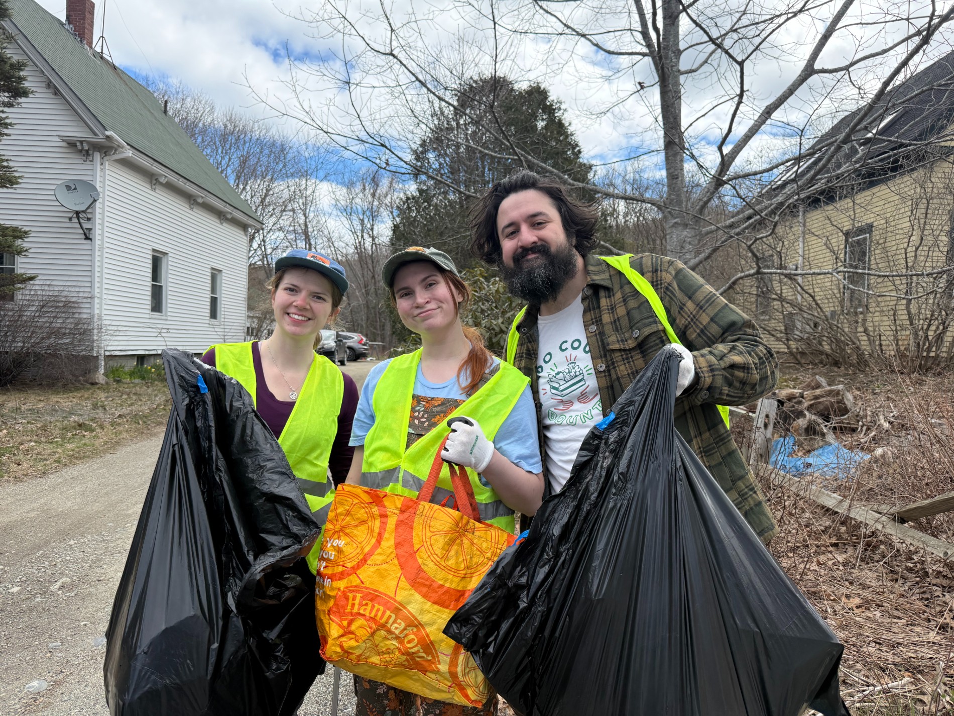 Volunteers gathered at 11 locations across Mount Desert Island and Trenton before spreading out along 40 miles of state roads, wearing safety vests and carrying trash bags. On foot, they combed the roadsides for what winter had left behind, collecting plastic takeout containers, cans, hubcaps, bumpers, clothing, Styrofoam, and smaller pieces of debris.