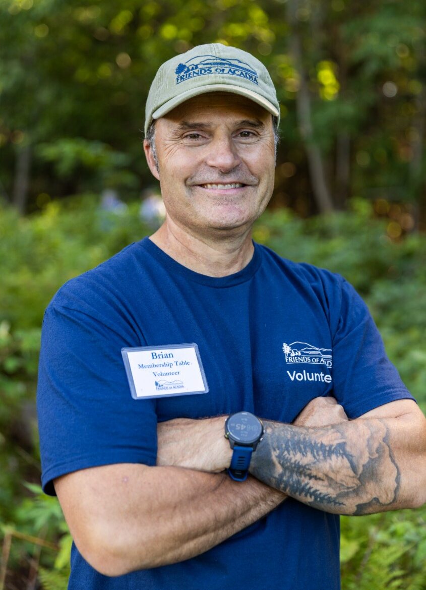 Since September 2024, Brian has served as a stewardship volunteer at Acadia, working his way up to the rank of Volunteer Crew Leader and helping to foster new caretakers for the park. He has also volunteered extensively as an ambassador for Friends of Acadia at the Membership Table at the Jordan Pond House and has carried soil as part of the Save our Summits restoration effort.
