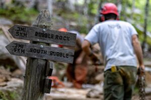 According to Chris Barter, park ranger and trail crew leader, the 1940s and ‘50s marked a shift in local interest in trail and carriage roads. The network languished after the Great Fire of 1947.