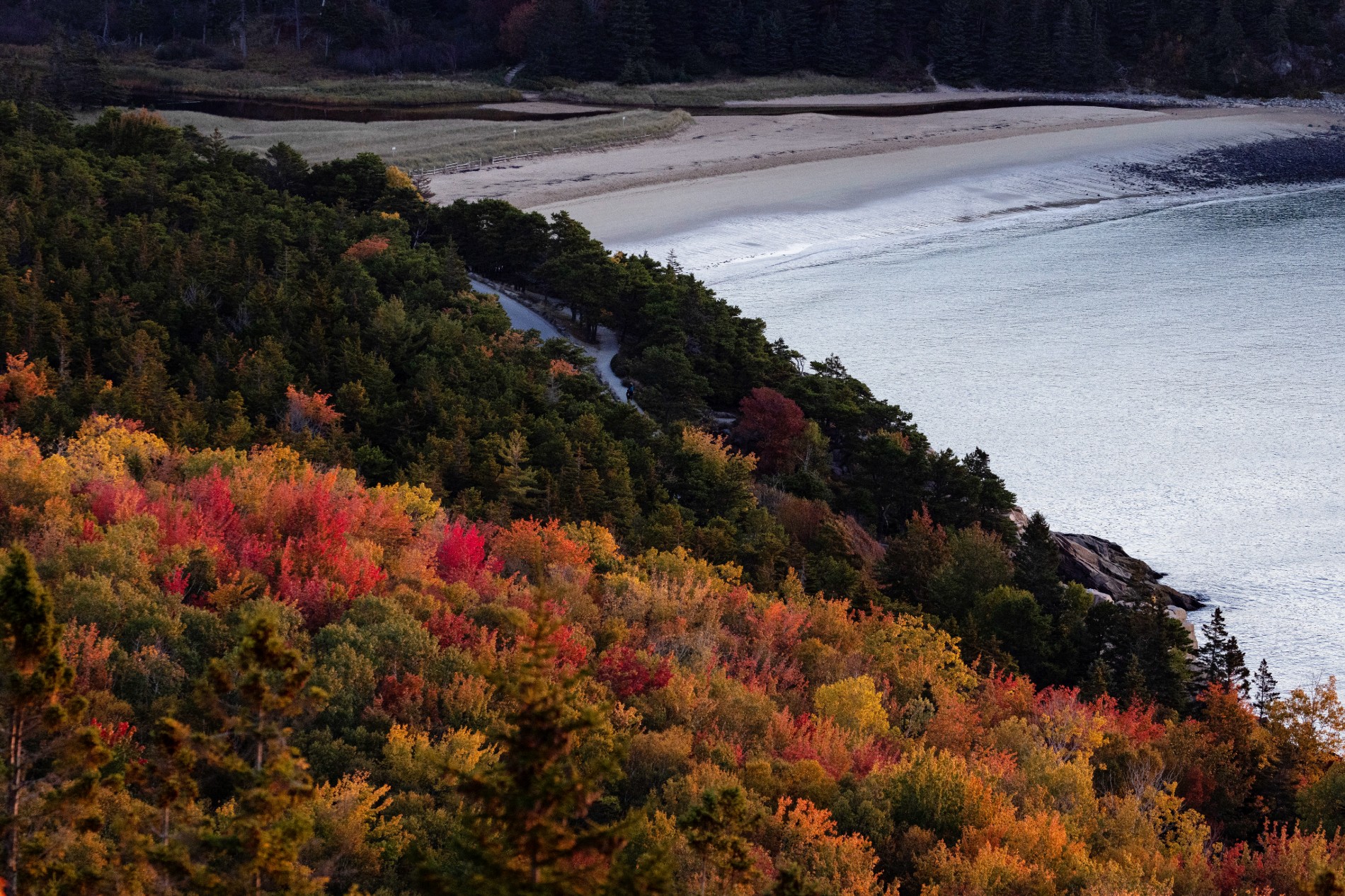 Morning light shines on fall foliage as seen from the Gorham Mountain Trail, Sunday, October 9, 2022, in Acadia National Park. (Photo by Ashley L. Conti/Friends of Acadia)