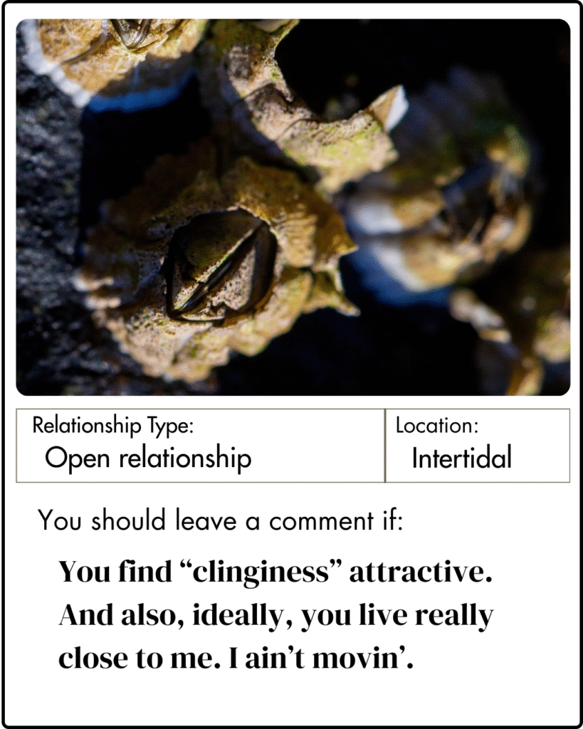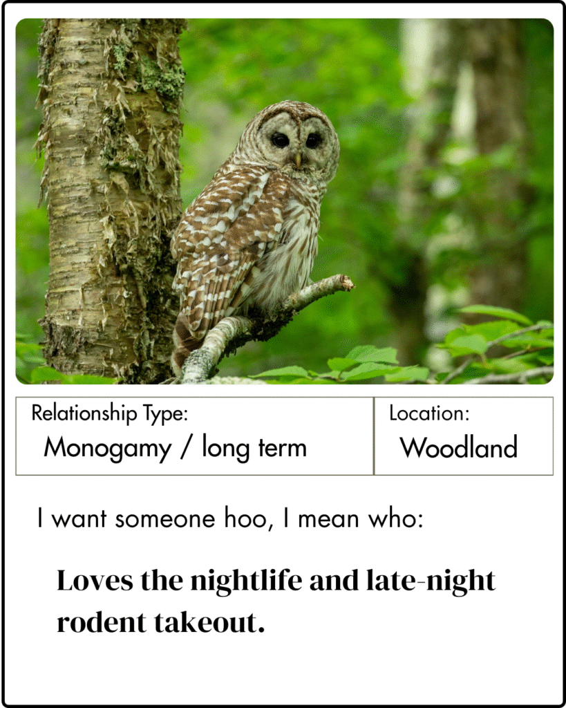 We’ve taken some liberties to create online dating profiles for some of Acadia’s wildlife. You just never know where you’ll meet “the one.” Or “the many,” as the case may be!
