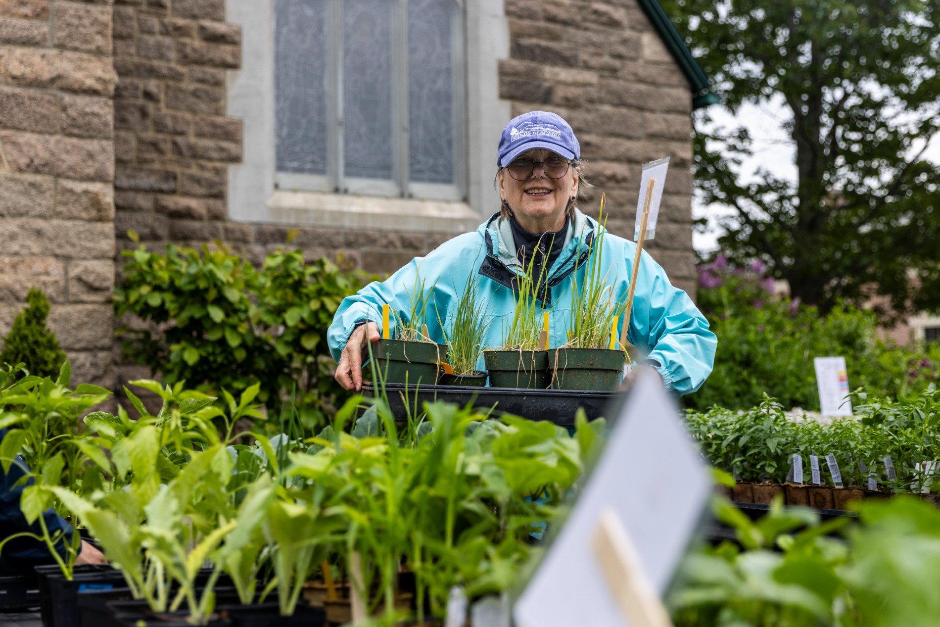 A Wild Gardens of Acadia volunteer helps prepare for the Annual Wild Gardens Plant Sale. (Rhiannon Johnston/Friends of Acadia)