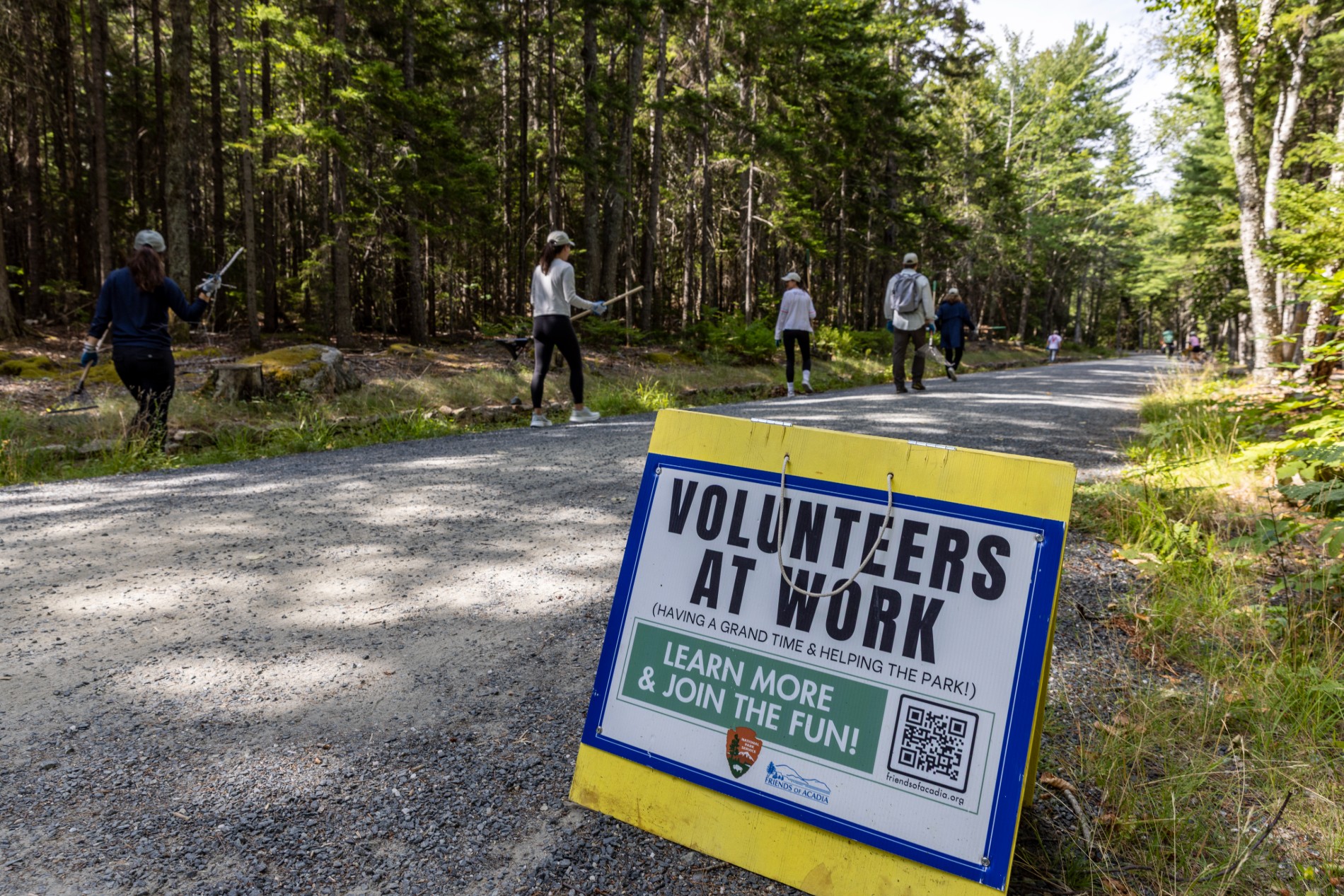Volunteers on the carriage roads of Acadia. (Rhiannon Johnston/Friends of Acadia)