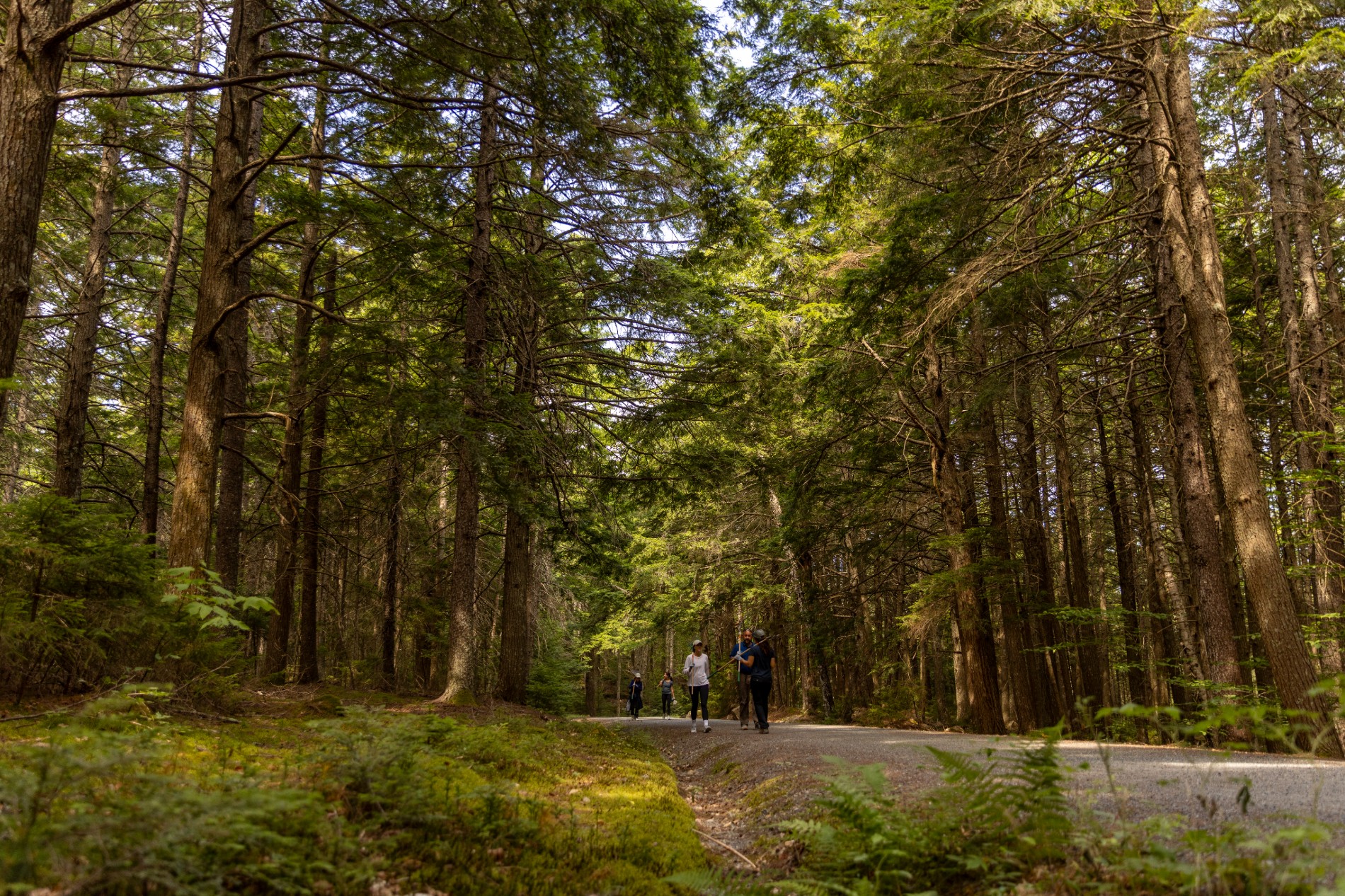 Volunteers walk the carriage roads on their way to their work location for the day. (Rhiannon Johnston/Friends of Acadia)