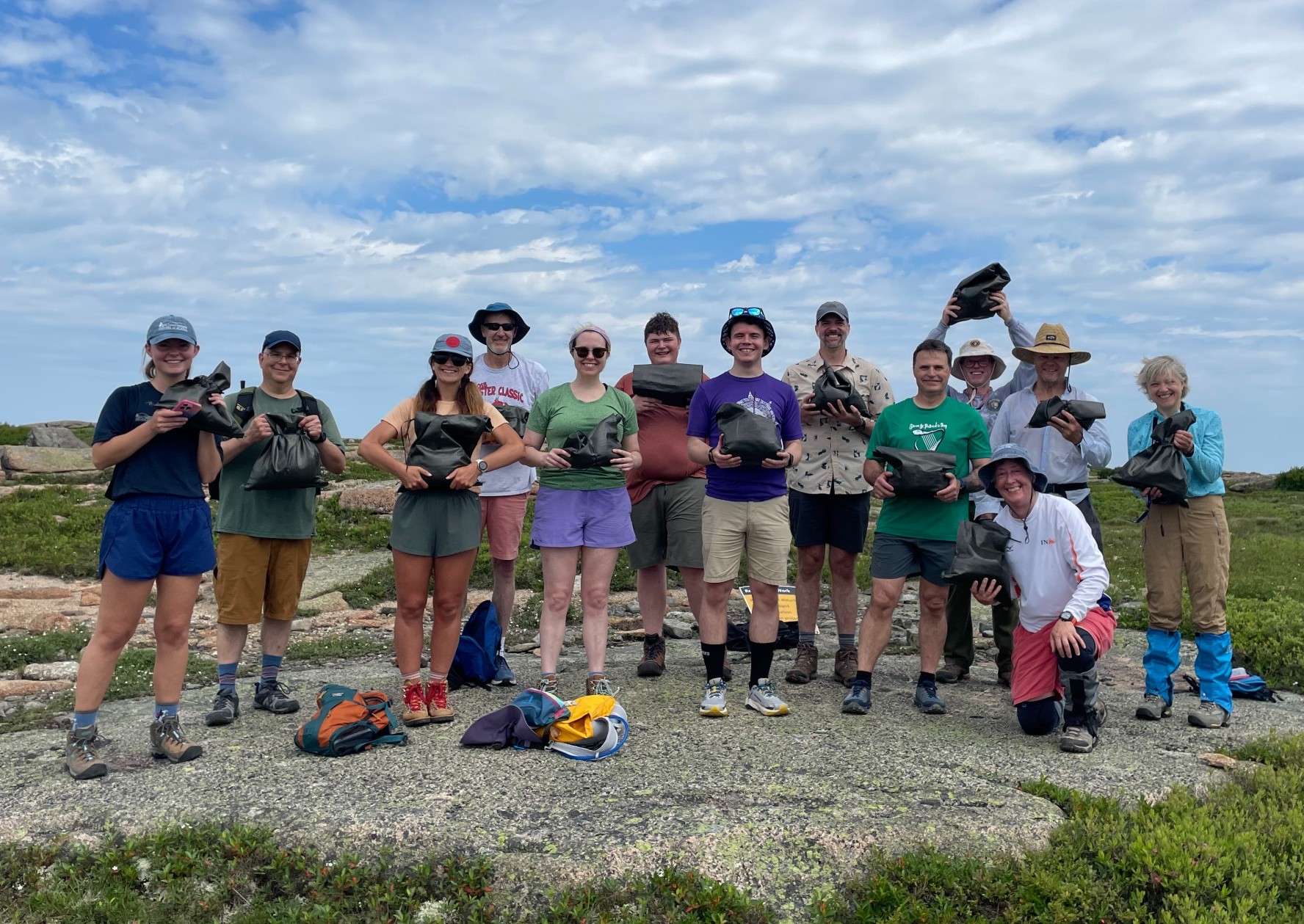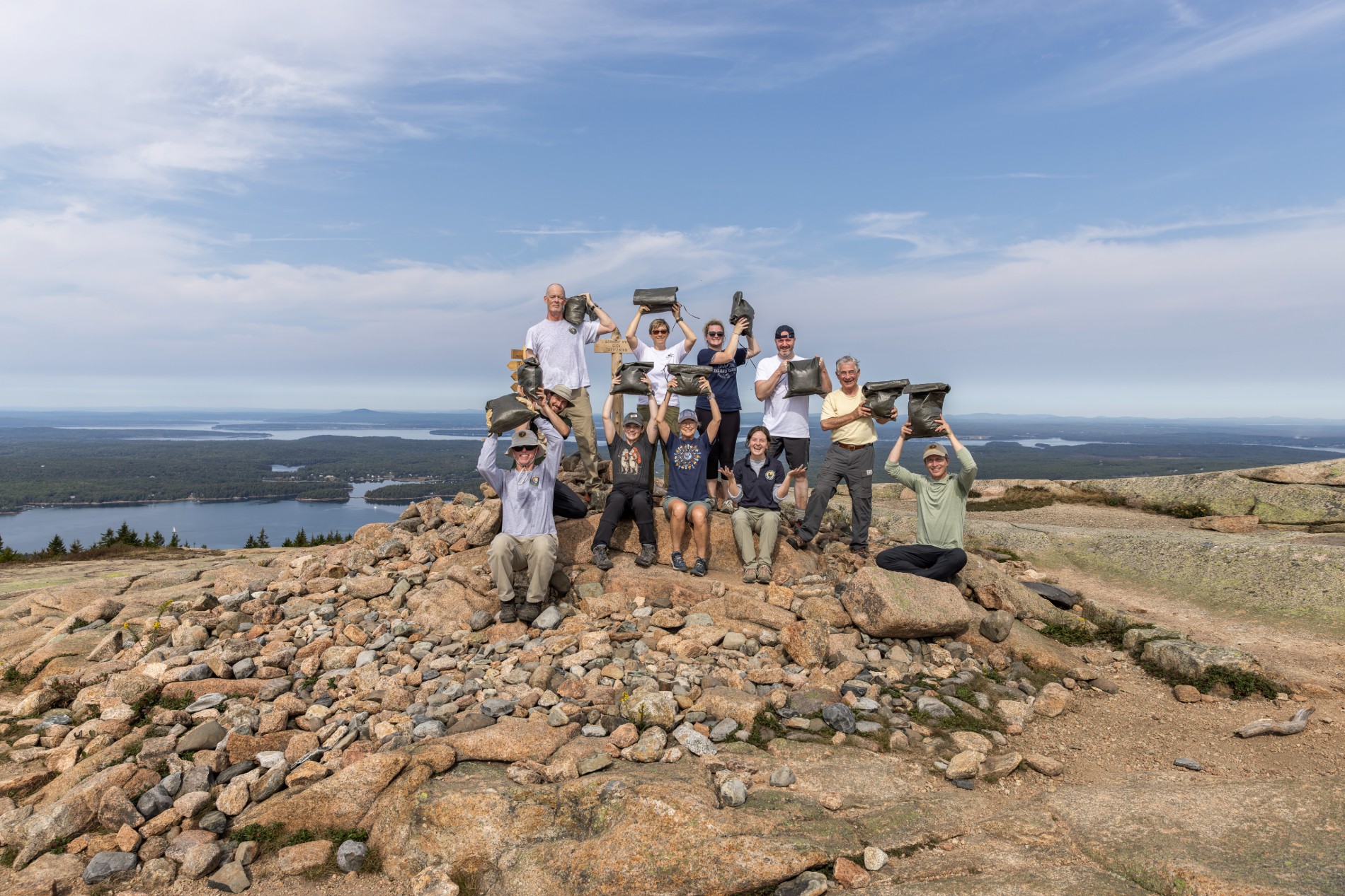 Volunteers carried 213 pounds of soil to the summit of Sargent Mountain during the final Soil to Summit hike of the season! (Rhiannon Johnston/Friends of Acadia)